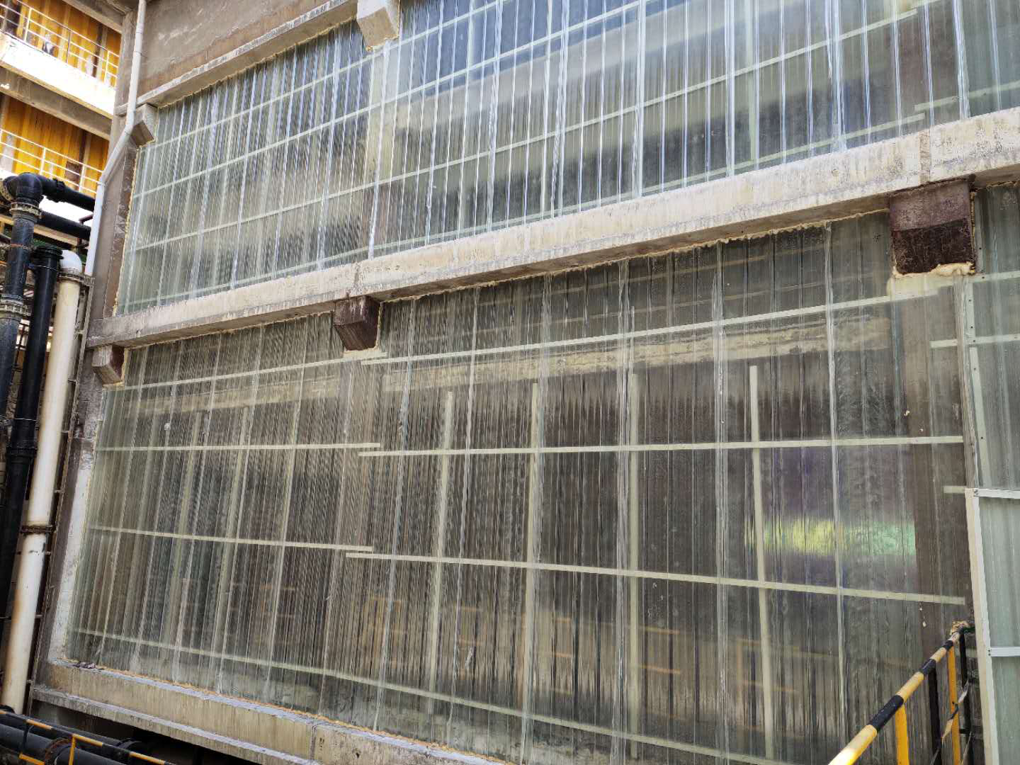 本公司經(jīng)過(guò)大量實(shí)地考察、調(diào)研、科學(xué)論證研發(fā)的下吸式負(fù)壓抽風(fēng)處理專利技術(shù),徹底地解決了酸霧污染的技術(shù)難題。即將電解生產(chǎn)車間密閉,在其上側(cè)部或頂部做出設(shè)計(jì)要求數(shù)量的進(jìn)風(fēng)口;在操作平臺(tái)上、操作平臺(tái)與電解槽間、電解槽與墻體間根據(jù)設(shè)計(jì)做出相應(yīng)通風(fēng)間隙,平臺(tái)以下四周封閉;風(fēng)機(jī)利用通風(fēng)管道與電解槽下部密閉空間聯(lián)通,開(kāi)啟風(fēng)機(jī)即可在操作平臺(tái)、電解槽面上等部位形成設(shè)計(jì)要求的負(fù)壓,將車間里形成的酸霧由密閉管道抽出,經(jīng)過(guò)冷卻塔捕集吸收、凈化處理,達(dá)標(biāo)后排入大氣;室外新鮮空氣通過(guò)車間頂部或側(cè)部預(yù)留進(jìn)風(fēng)口補(bǔ)入車間;技術(shù)特點(diǎn)有: